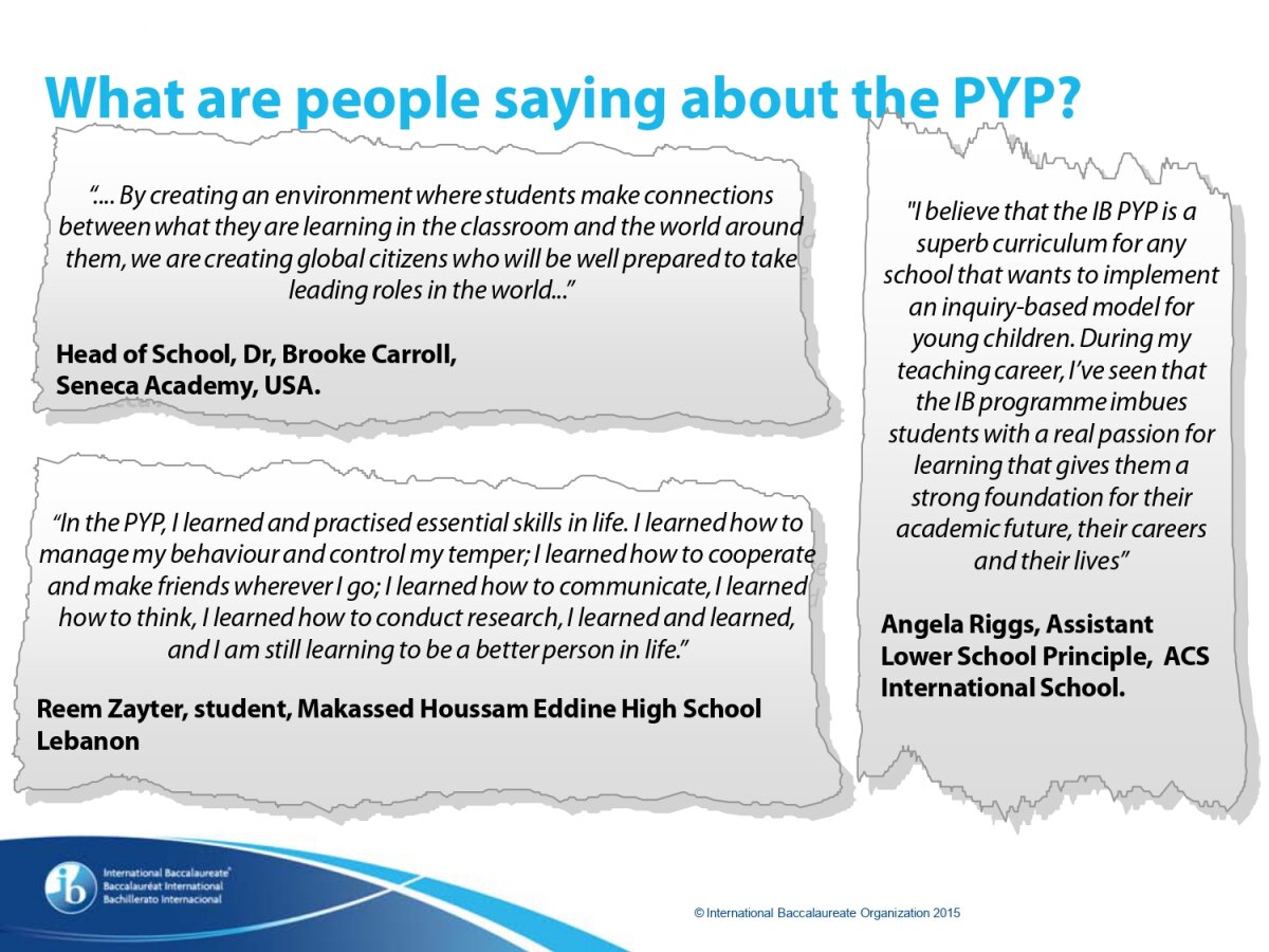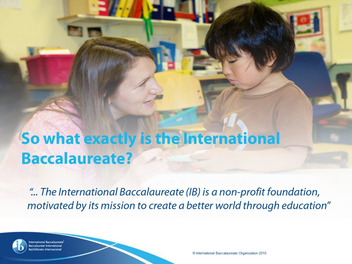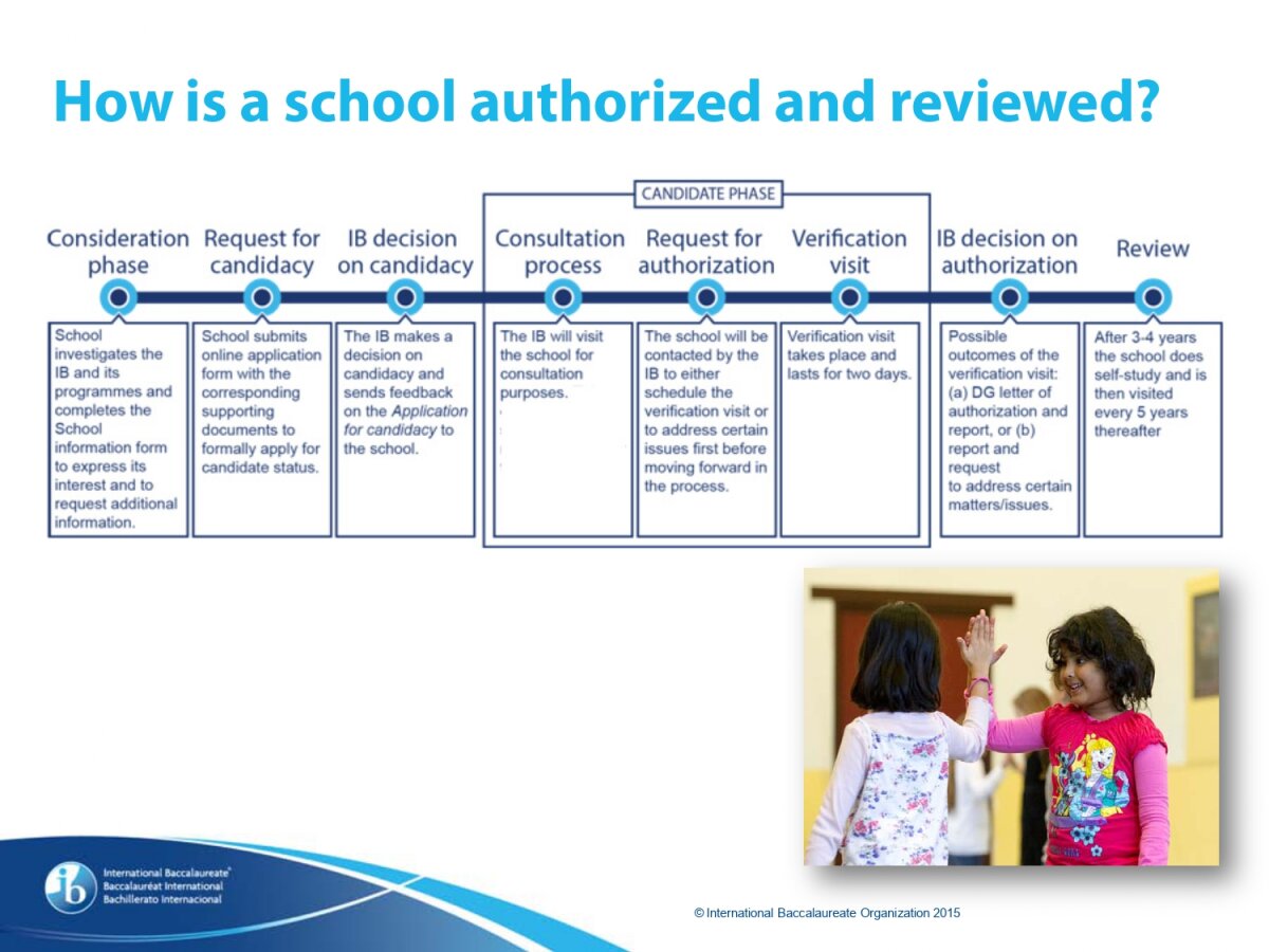 *Only schools authorized by the IB Organization can offer any of its four academic programmes: the Primary Years Programme (PYP), the Middle Years Programme (MYP), the Diploma Programme, or the Career-related Programme (CP). Candidate status gives no guarantee that authorization will be granted. For further information about the IB and its programmes, visit www.ibo.org